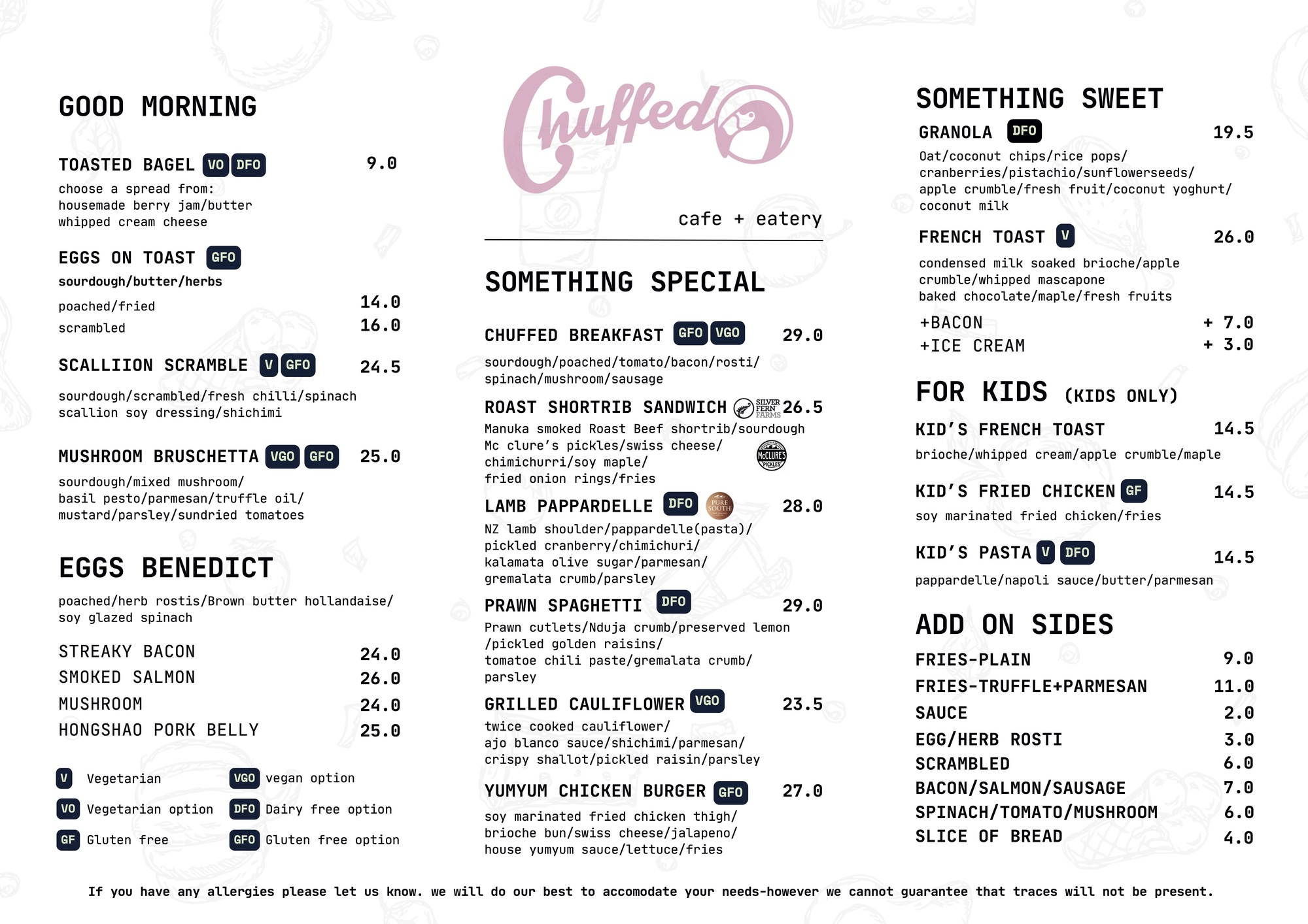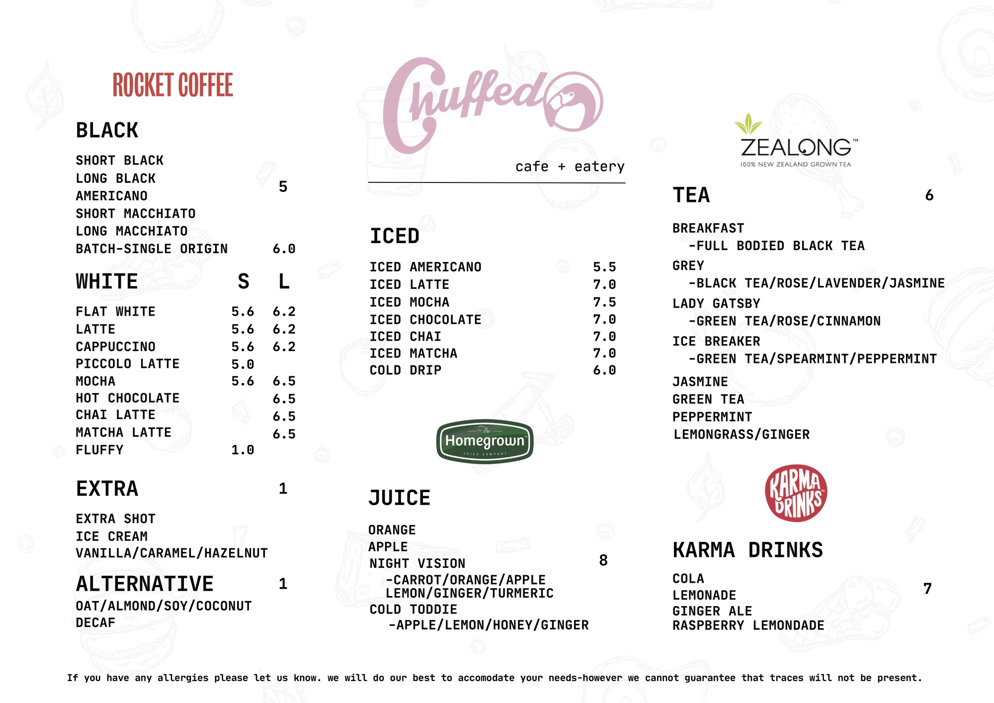 Like our name, Chuffed harkens back to simpler days, when you could count on great service at your local while enjoying seasonal dishes and amazing, consistent and fresh coffee every time.